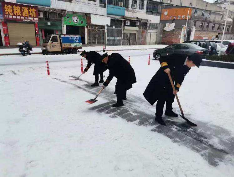 新年瑞雪到,金城裹銀裝 。2月21日,受冷空氣影響,湖北多地遭遇凍雨、暴雪等惡劣天氣。這場(chǎng)農(nóng)歷新春第一場(chǎng)雪,為城市帶來(lái)了美景但也給人們的出行帶來(lái)諸多不便和安全隱患。領(lǐng)威保安公司迅速響應(yīng),以雪為“令”,全力以赴投入到除雪破冰的行動(dòng)中。他們以實(shí)際行動(dòng)踐行領(lǐng)威保安隊(duì)伍的服務(wù)品質(zhì)和責(zé)任,確??蛻魡挝坏纳?cái)產(chǎn)不受損失,用“小行動(dòng)”保障“大安全”。