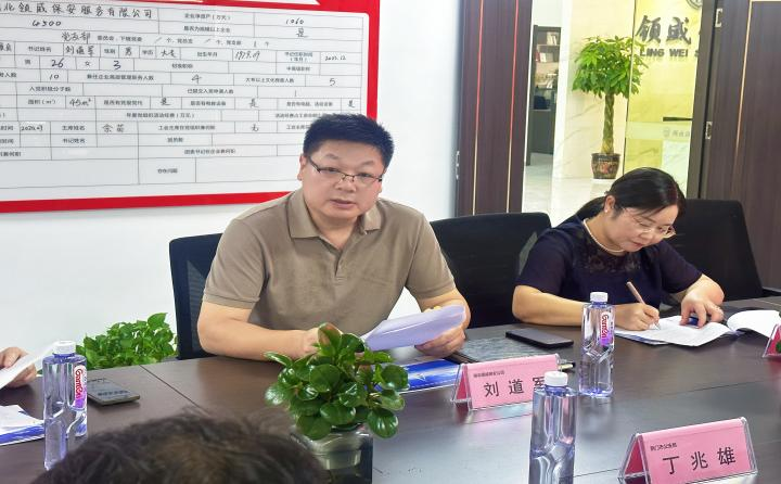 領(lǐng)威保安公司總經(jīng)理劉道軍、副總經(jīng)理劉花全程陪同接待,對各位領(lǐng)導(dǎo)的到來表示熱烈歡迎。在座談交流中,劉道軍總經(jīng)理圍繞公司發(fā)展歷程、業(yè)務(wù)布局、隊伍建設(shè)及未來規(guī)劃等核心內(nèi)容作專題介紹,同時結(jié)合行業(yè)實踐,深入分析了當(dāng)前保安行業(yè)面臨的發(fā)展痛點,并就規(guī)范行業(yè)管理、提升服務(wù)質(zhì)效等方面提出針對性建議。