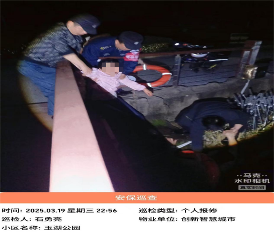 玉湖公園駐點(diǎn)保安隊(duì)員巡邏時(shí),發(fā)現(xiàn)一女子欲跳湖輕生,危急時(shí)刻毫不猶豫躍入水中,及時(shí)將人救起,用果敢詮釋擔(dān)當(dāng);