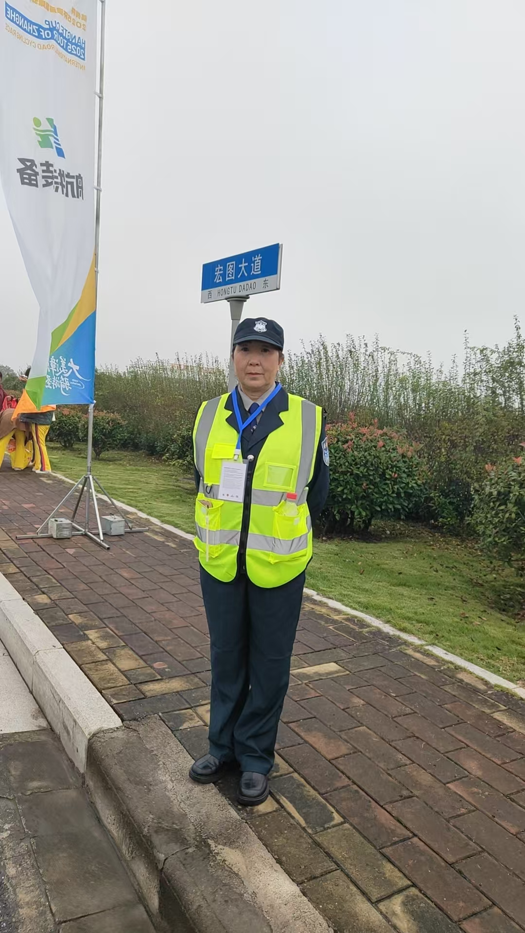 賽事第一天,環(huán)庫公路遭遇風雨襲擊,寒風夾雜著雨水呼嘯而過,給賽事安保工作帶來了不小的挑戰(zhàn)。但即便如此,清晨天還未亮,50名安保人員已全員到崗。他們身著醒目的反光背心,迅速奔赴各個執(zhí)勤崗位,細致檢查場地,做好賽前準備。比賽中,風雨絲毫沒有動搖他們的堅守——站姿挺拔、目光專注緊盯賽場動態(tài),全程為選手創(chuàng)造安全暢通的競賽環(huán)境。